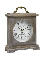 Sparkle Decors Vintage Washed Wood Mantel Clock – Rustic Roman Numerals Farmhouse Table Shelf Clock (20x23cm)