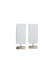 Modern touch dimmable table lamp set with elegant fabric shades, perfect for bedrooms or living spaces, offering soft, adjustable ambient lighting.