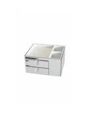 This jewellery box includes two smooth-slide drawers designed for storing jewellery, accessories, small makeup items, or keepsakes. Each drawer is crafted to keep valuables protected while offering easy access. The mirrored finish reflects surrounding décor beautifully, and the drawer handles feature crystal-inspired styling for an added touch of luxury. Whether used in the bedroom or dressing area, it brings organisation and refined glamour into your daily routine.