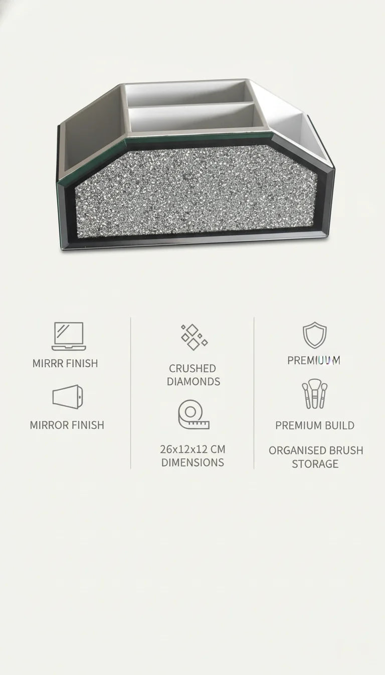 Elegant mirrored beauty box keeps brushes organised with a sparkling luxury finish. Luxurious Exterior Design The sleek mirrored panels and...