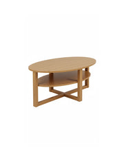 Stylish 2-tier oak effect oval coffee table offering smart storage, durable wooden build, and modern elegance for contemporary living rooms.