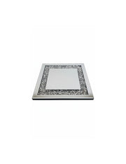 Elegant mirrored candle plates with crushed jewels, adding luxury and sparkle to any décor.