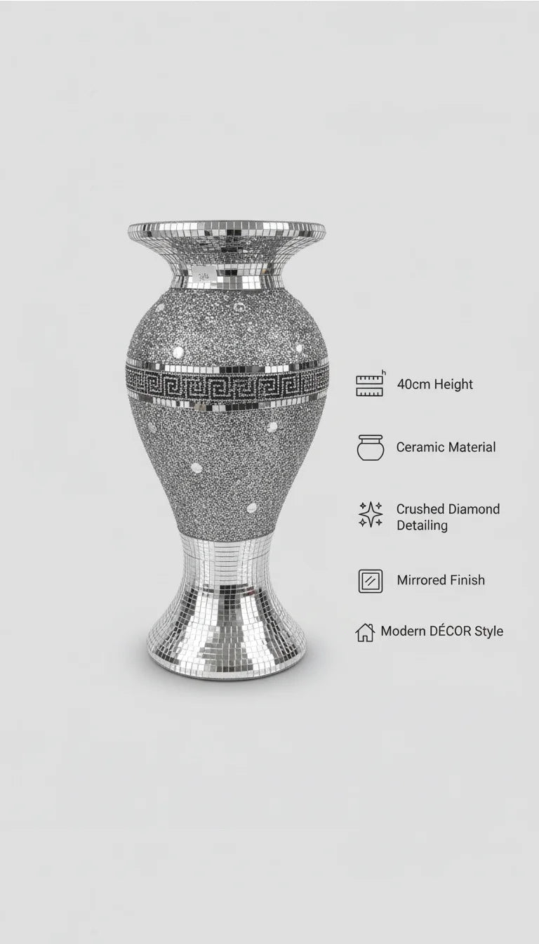 Crushed Crystal Silver Floor Vase Modern Decor - Sparkle Decors