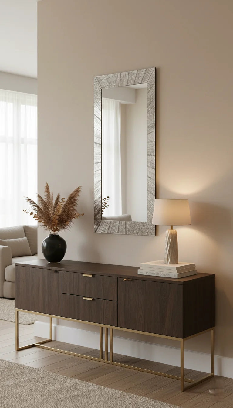 Sparkle Decors Silver Glitter Sunburst Rectangle Wall Mirror 110x40cm – Modern Decorative Frameless Mirror for Living Room & Hallway