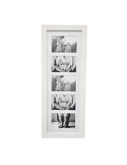 Create a beautiful wall story with this elegant white 5-photo collage frame.