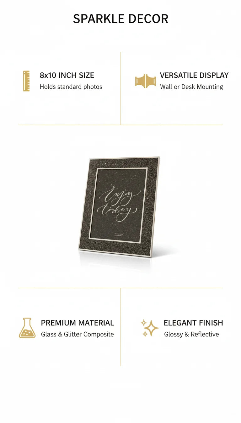 Our goal at Sparkle Decor is to transform homes into exquisite representations of individuality. Every frame we make maintains the balance between emotion and art, giving you to stand out what really matters. Our brand philosophy - simple, eye-catching, and sophisticated - is reflected in the Black Glitter Glass Frame.