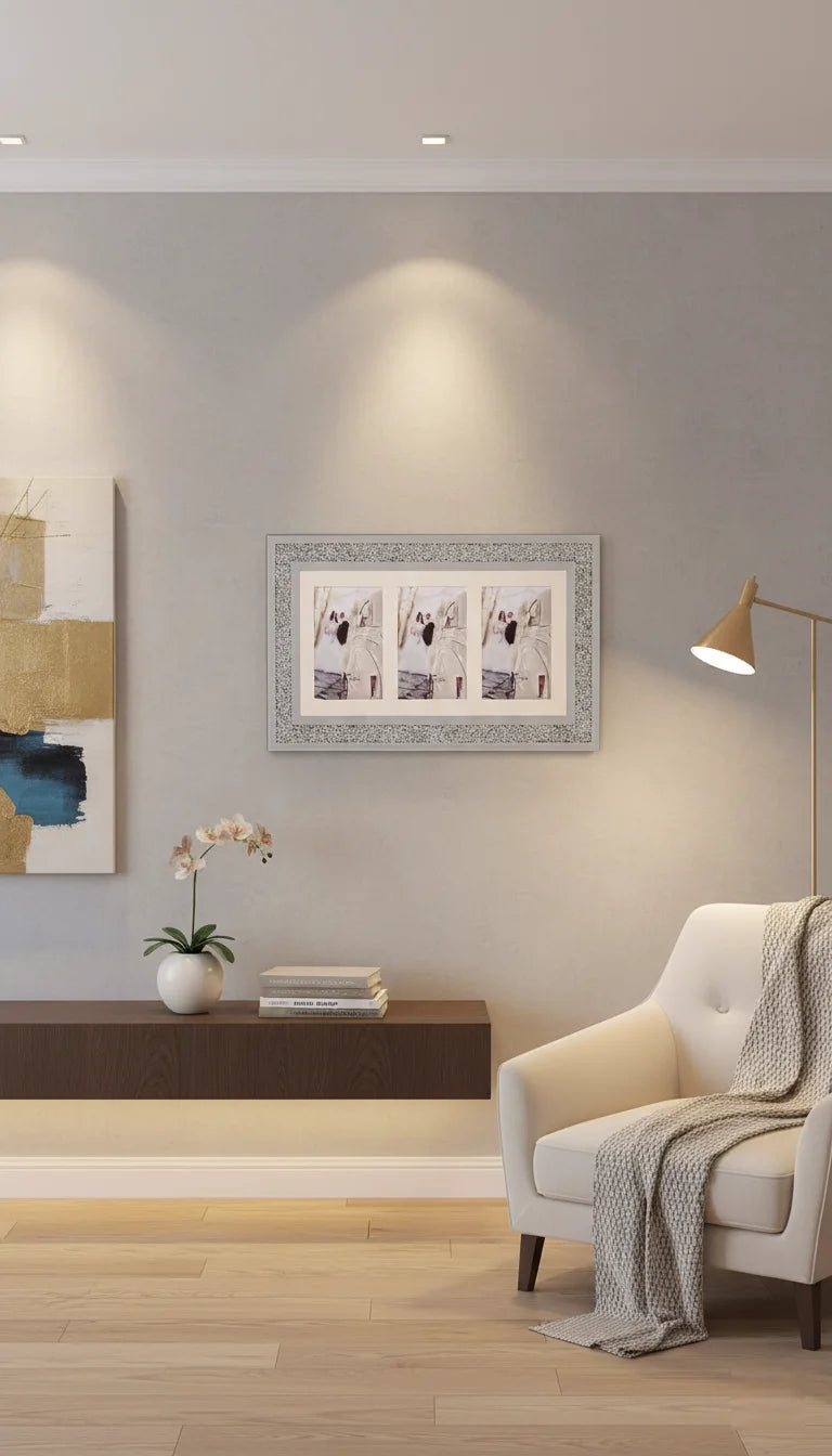 Elegant crushed crystal multi-frame showcasing three precious 4x6 memories beautifully. Radiant Crushed Crystal Design The crushed crystal border enhances each...