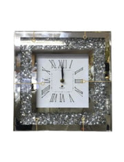Crushed Diamond Silver Square Wall Clock – 30cm Sparkling Crystal Timepiece | Sparkle Decors UK