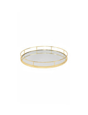 With a generous 37.5 cm diameter and 4.5 cm height, this tray offers plenty of room to organize your essentials whilst maintaining a sleek and clean look. Its raised gold frame ensures items stay secure, and the reflective mirrored base enhances the appeal of anything placed on it. The deep metal design adds structure and stability, making it ideal for daily use.